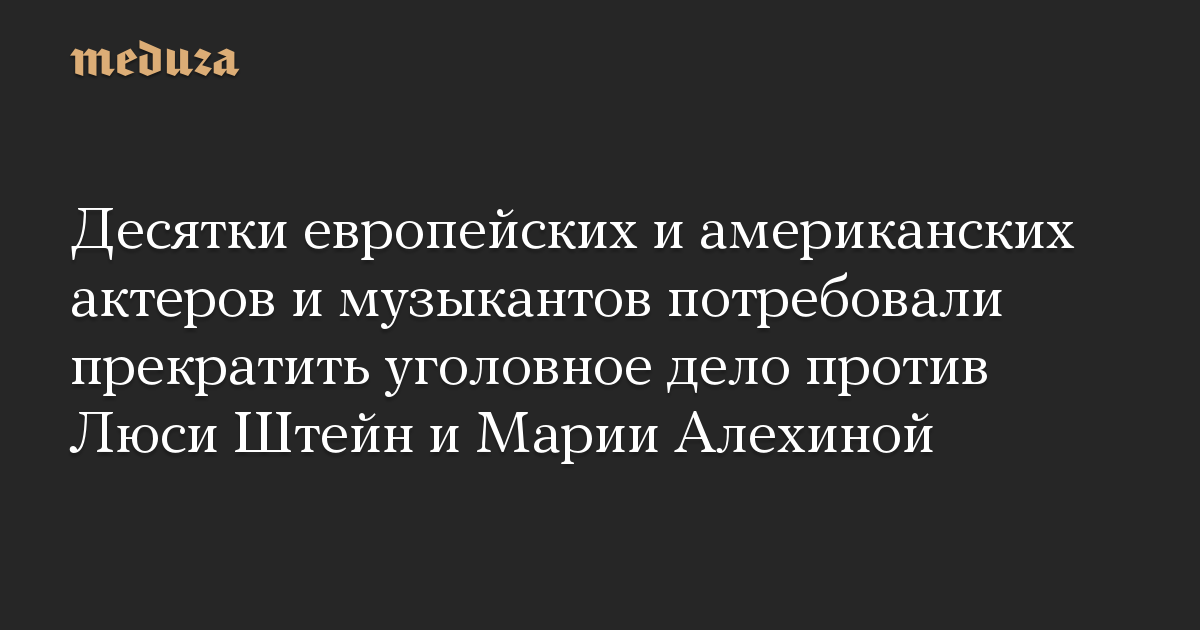 Десятки европейских и американских актеров и музыкантов потребовали прекратить уголовное дело против Люси Штейн и Марии Алехиной