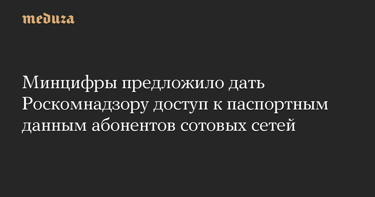 Минцифры предложило дать Роскомнадзору доступ к паспортным данным абонентов сотовых сетей