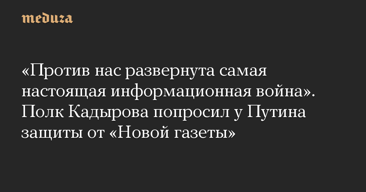 «Против нас развернута самая настоящая информационная война». Полк Кадырова попросил у Путина защиты от «Новой газеты»