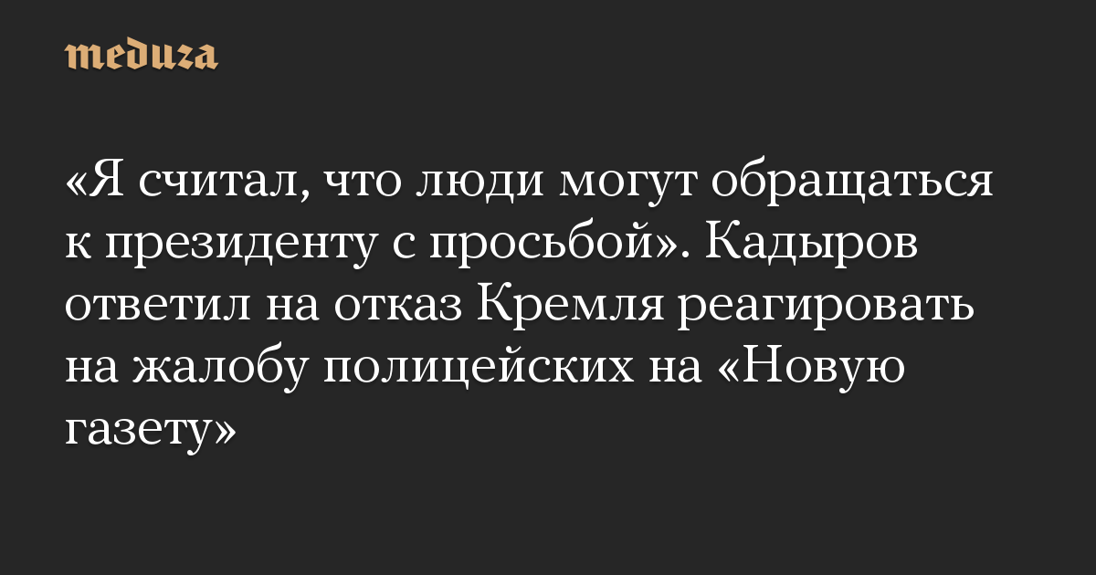 «Я считал, что люди могут обращаться к президенту с просьбой». Кадыров ответил на отказ Кремля реагировать на жалобу полицейских на «Новую газету»