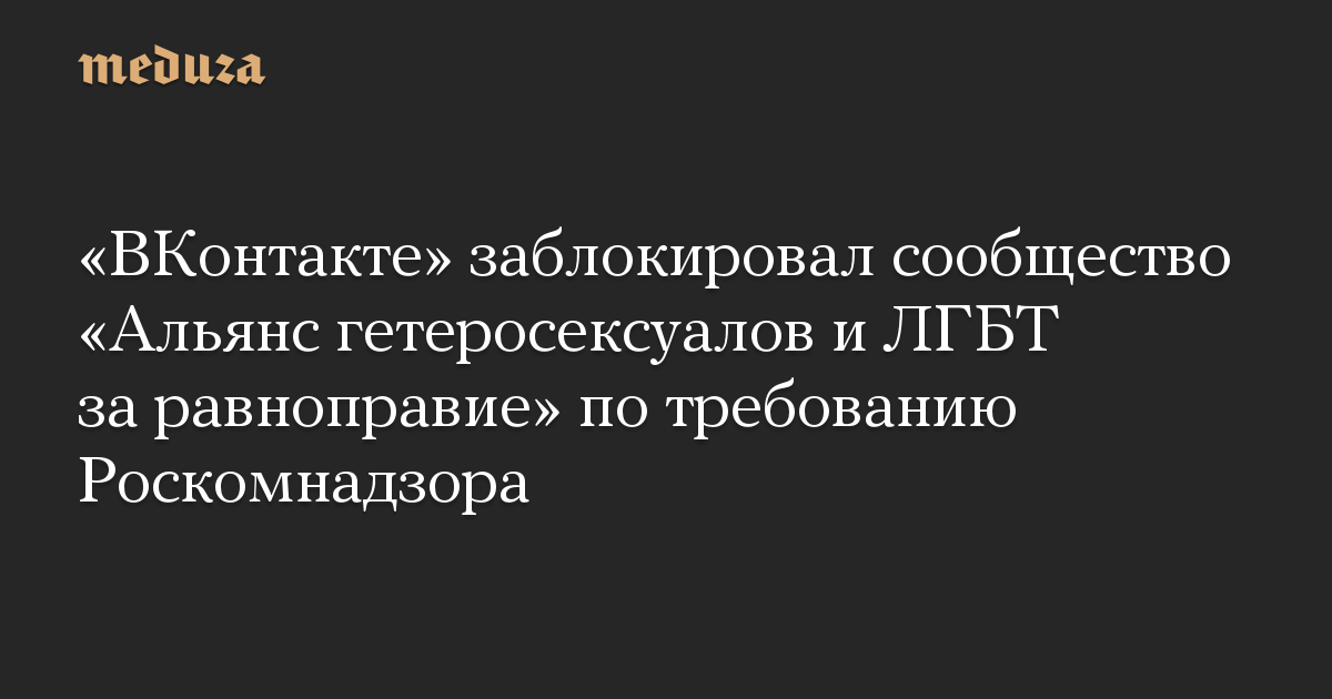 «ВКонтакте» заблокировал сообщество «Альянс гетеросексуалов и ЛГБТ за равноправие» по требованию Роскомнадзора