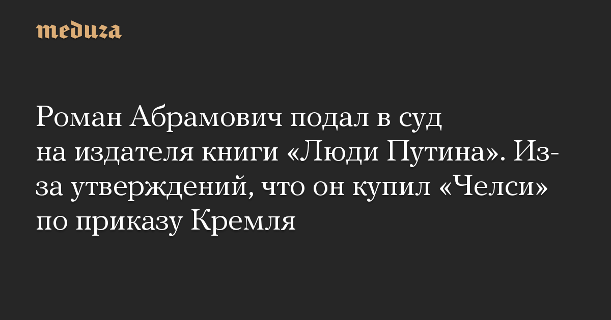 Роман Абрамович подал в суд на издателя книги «Люди Путина». Из-за утверждений, что он купил «Челси» по приказу Кремля