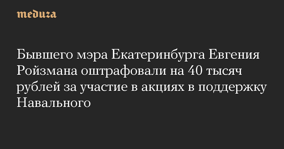 Бывшего мэра Екатеринбурга Евгения Ройзмана оштрафовали на 40 тысяч рублей за участие в акциях в поддержку Навального