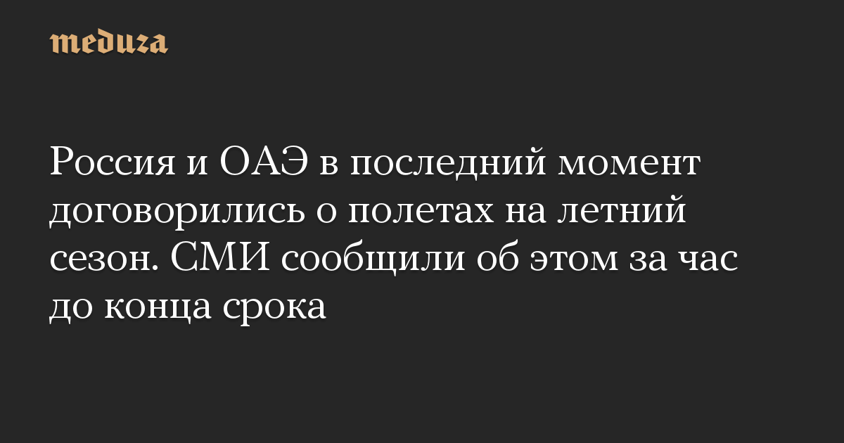 Россия и ОАЭ в последний момент договорились о полетах на летний сезон. СМИ сообщили об этом за час до конца срока