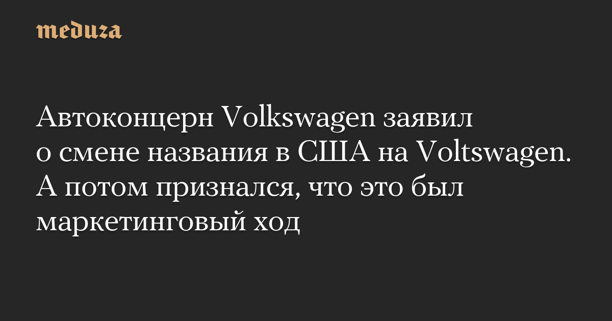 Автоконцерн Volkswagen заявил о смене названия в США на Voltswagen. А потом признался, что это был маркетинговый ход