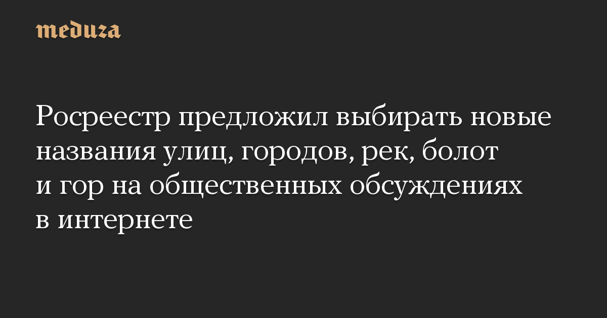 Росреестр предложил выбирать новые названия улиц, городов, рек, болот и гор на общественных обсуждениях в интернете