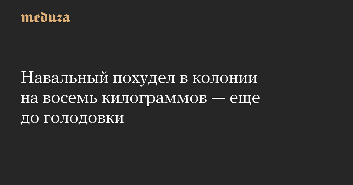 С момента прибытия в колонию № 2 в городе Покров российский политик Алексей Навальный, который накануне объявил голодовку, похудел на восемь килограммов. Об этом сообщается в новом посте в его телеграм-канале.