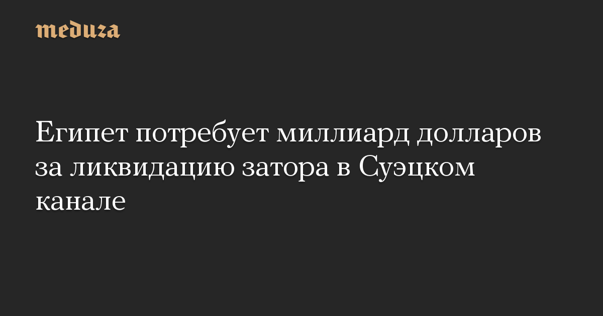 Власти Египта потребуют выплатить компенсацию в размере более одного миллиарда долларов за расходы, понесенные за неделю, в течение которой контейнеровоз «Эвер Гивен» блокировал Суэцкий канал. Об этом, как сообщает Associated Press, заявил глава управления Суэцкого канала Усама Рабиа.