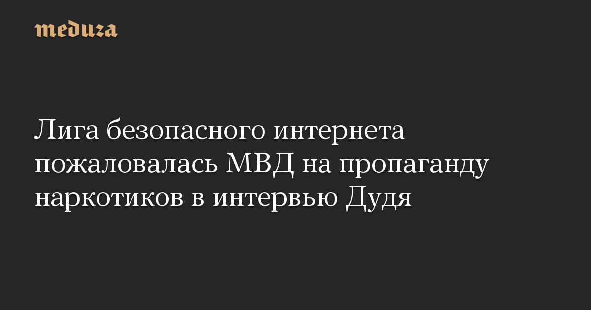 Лига безопасного интернета пожаловалась МВД на пропаганду наркотиков в интервью Дудя