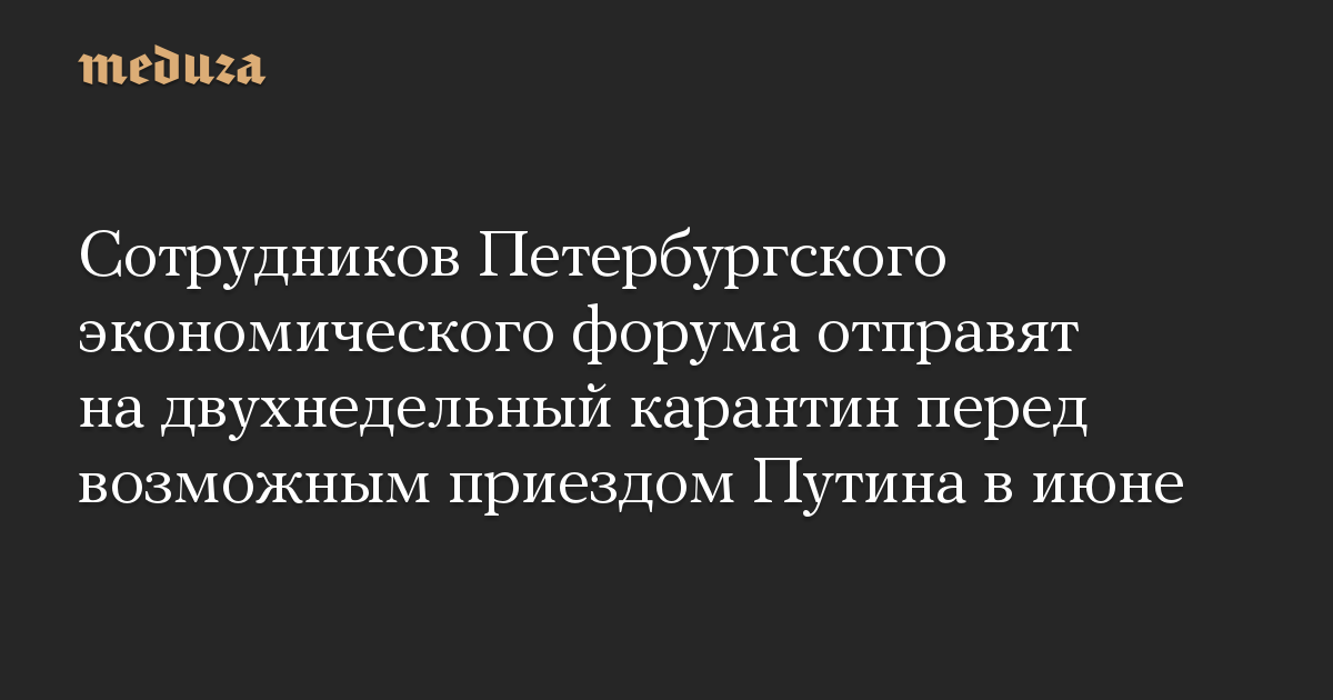 Сотрудников Петербургского экономического форума отправят на двухнедельный карантин перед возможным приездом Путина в июне