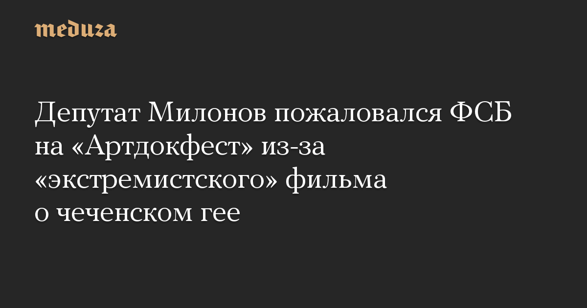 Депутат Милонов пожаловался ФСБ на «Артдокфест» из-за «экстремистского» фильма о чеченском гее