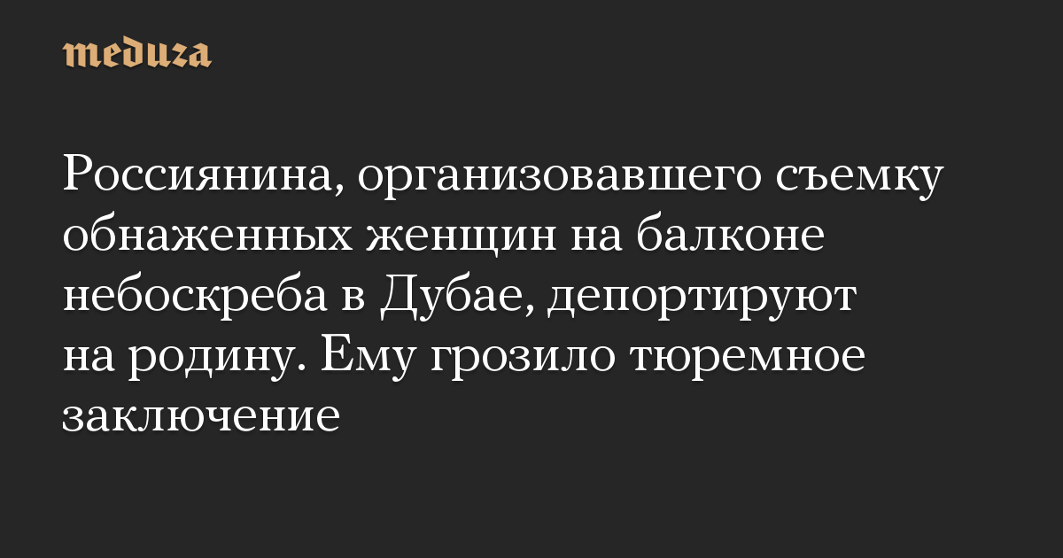 Россиянина, организовавшего съемку обнаженных женщин на балконе небоскреба в Дубае, депортируют на родину. Ему грозило тюремное заключение