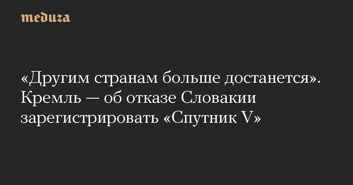 «Другим странам больше достанется». Кремль — об отказе Словакии зарегистрировать «Спутник V»