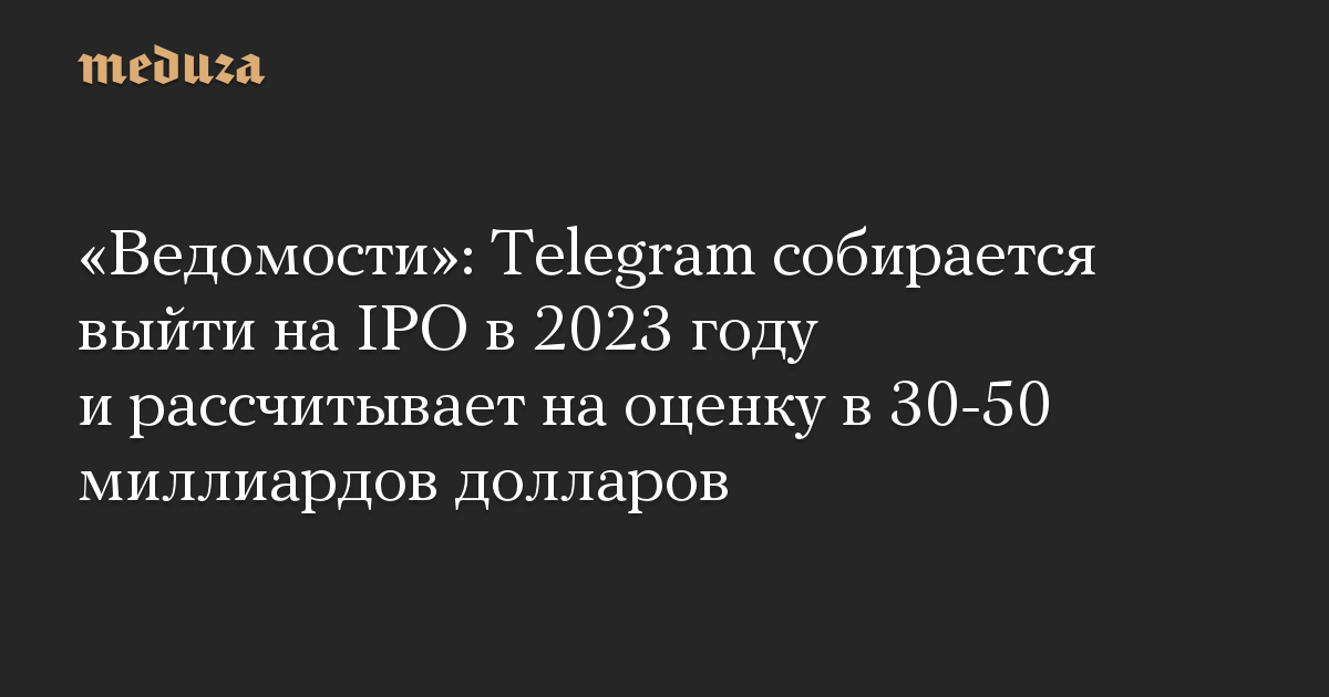 «Ведомости»: Telegram собирается выйти на IPO в 2023 году и рассчитывает на оценку в 30-50 миллиардов долларов