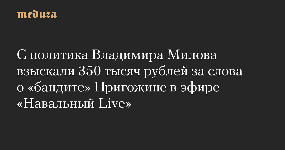 С политика Владимира Милова взыскали 350 тысяч рублей за слова о «бандите» Пригожине в эфире «Навальный Live»