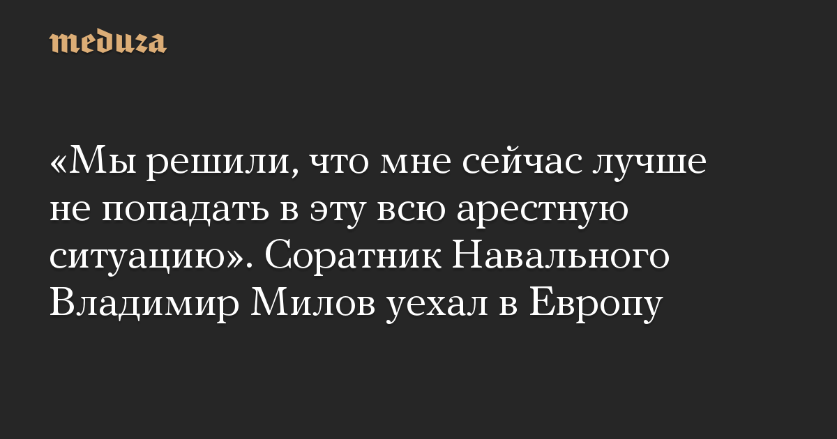 «Мы решили, что мне сейчас лучше не попадать в эту всю арестную ситуацию». Соратник Навального Владимир Милов уехал в Европу