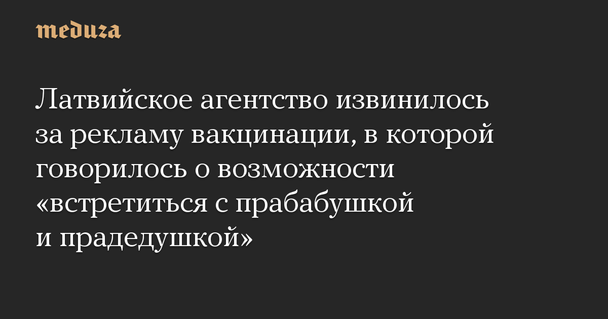 Латвийское агентство извинилось за рекламу вакцинации, в которой говорилось о возможности «встретиться с прабабушкой и прадедушкой»