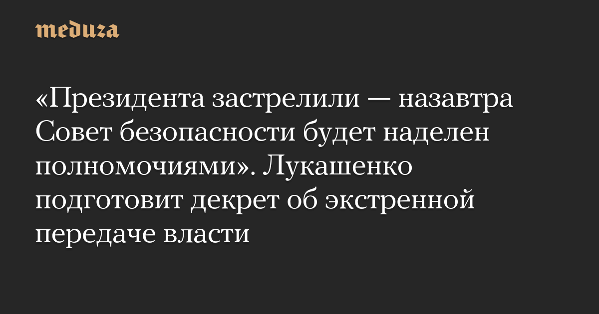 «Президента застрелили — назавтра Совет безопасности будет наделен полномочиями». Лукашенко подготовит декрет об экстренной передаче власти