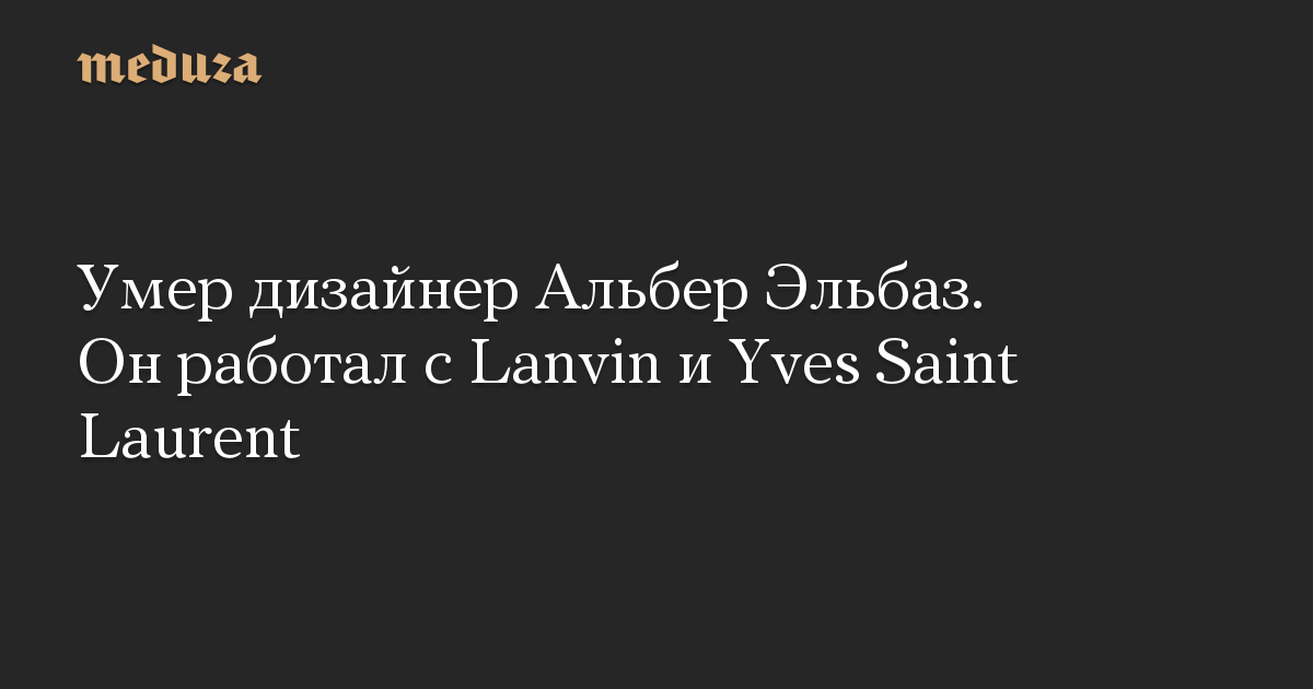 Умер дизайнер Альбер Эльбаз. Он работал с Lanvin и Yves Saint Laurent