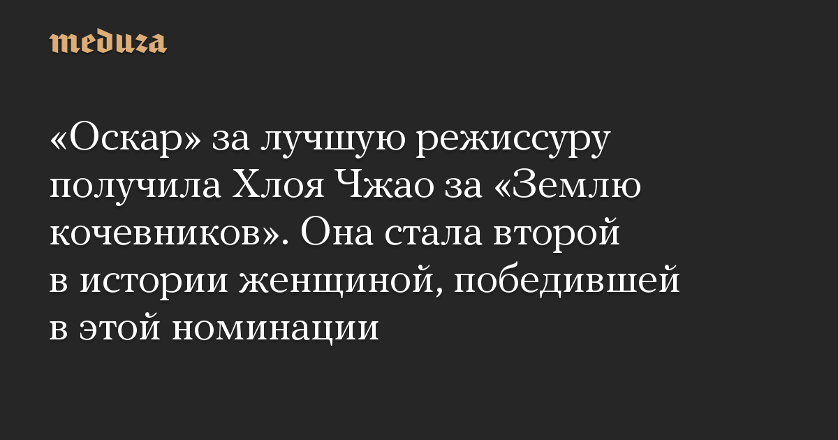 Чжао стала второй в истории женщиной, получившей режиссерский «Оскар». Первой в 2010 году была Кэтрин Бигелоу с «Повелителем бури».
