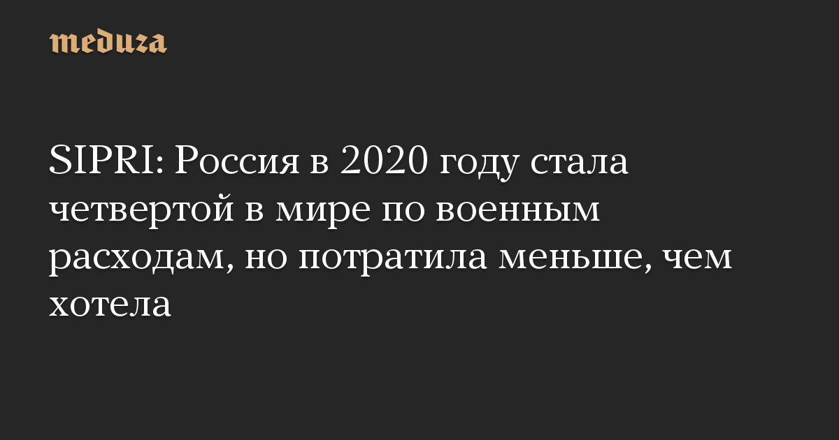 SIPRI: Россия в 2020 году стала четвертой в мире по военным расходам, но потратила меньше, чем хотела