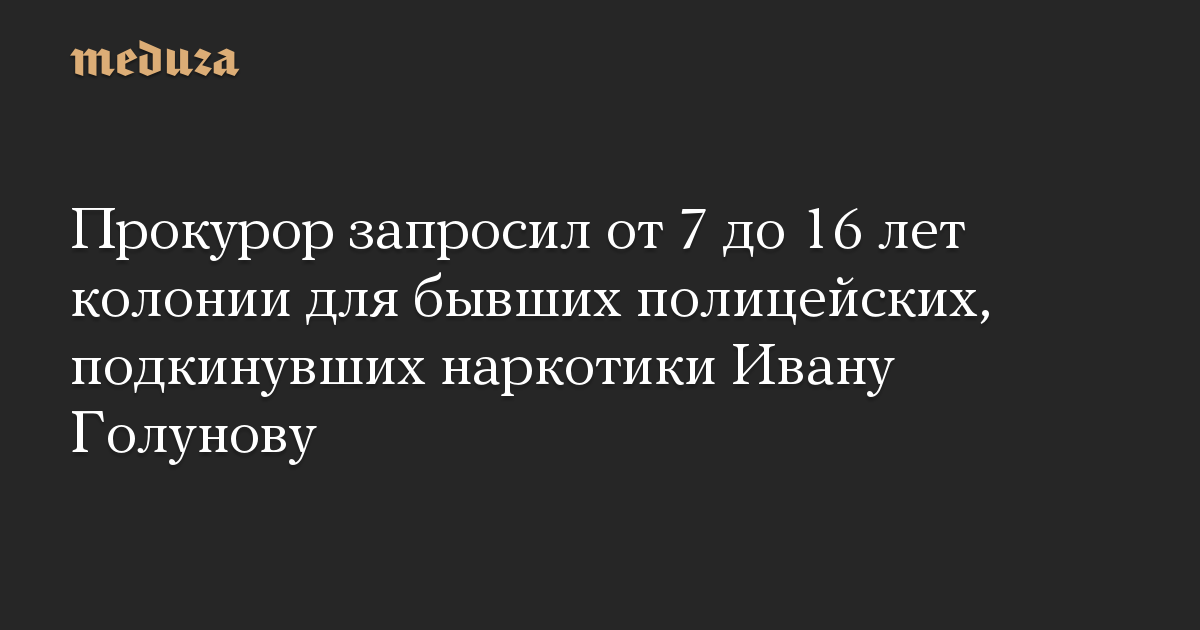 Прокурор попросил Мосгорсуд приговорить к различным срокам заключения — от 7 до 16 лет — бывших полицейских, обвиняемых в фабрикации уголовного дела против корреспондента «Медузы» Ивана Голунова. Об этом «Интерфаксу» сообщил адвокат Алексей Губкин, представляющий интересы Дениса Коновалова, одного из обвиняемых.
