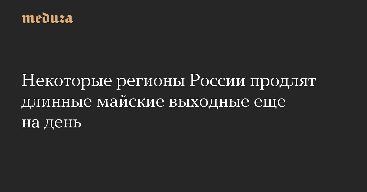 Таким образом, длинные майские выходные в этих регионах, объявленные президентом России с 1 по 10 мая, продлятся на день больше.