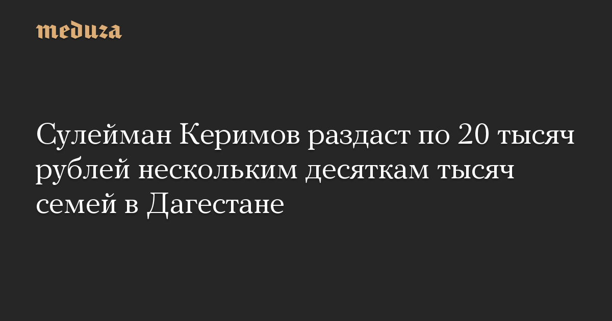Сулейман Керимов раздаст по 20 тысяч рублей нескольким десяткам тысяч семей в Дагестане