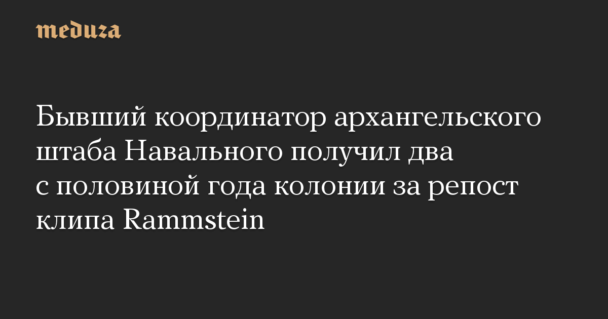 Бывший координатор архангельского штаба Навального получил два с половиной года колонии за репост клипа Rammstein