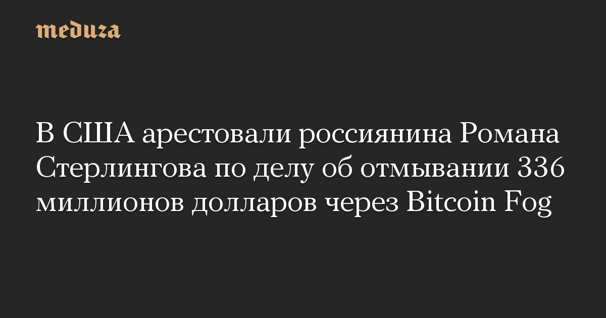 В Лос-Анджелесе арестован россиянин Роман Стерлингов, которого правоохранительные органы США подозревают в причастности к отмыванию 336 миллионов долларов через сайт Bitcoin Fog, сообщает Reuters.