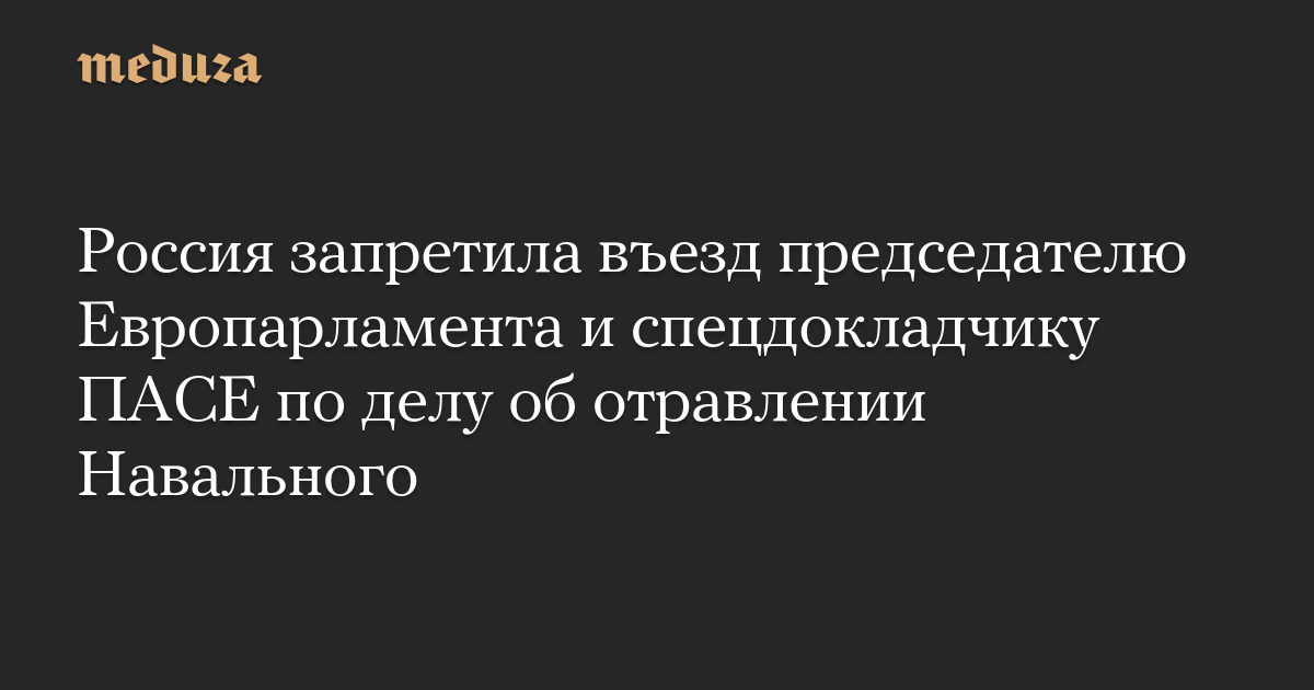 Россия запретила въезд председателю Европарламента и спецдокладчику ПАСЕ по делу об отравлении Навального