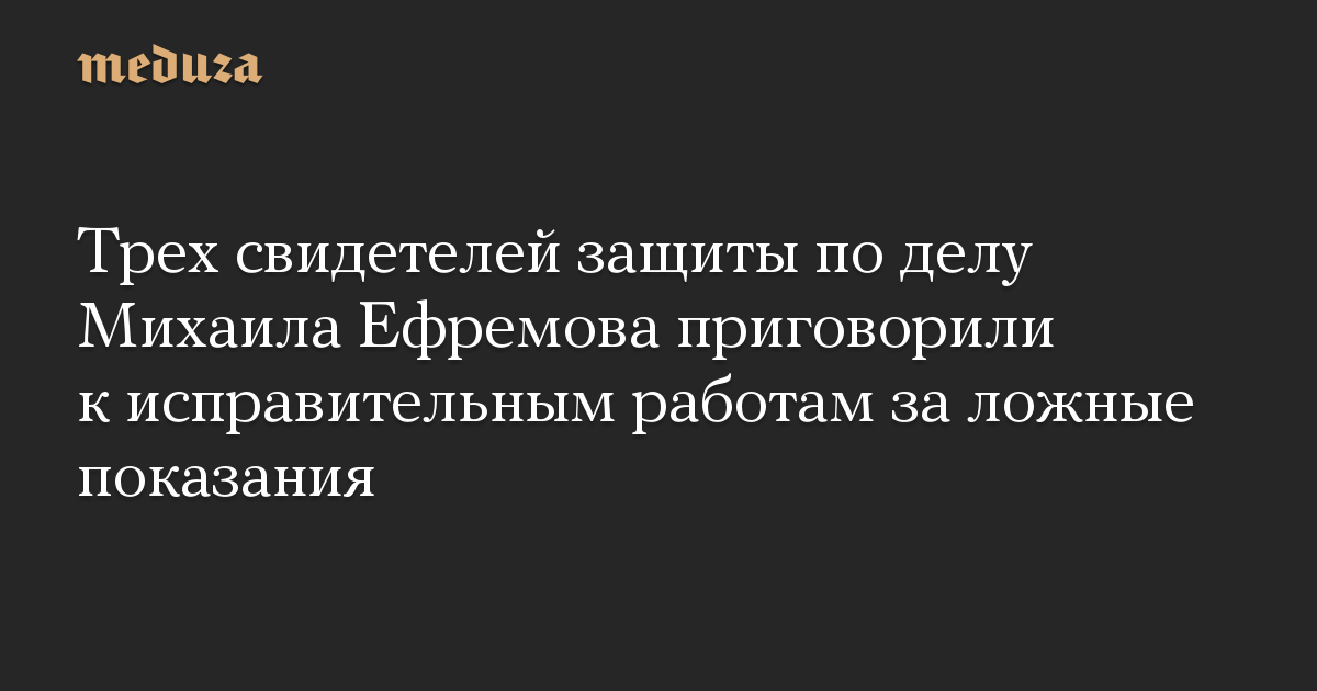 Трех свидетелей защиты по делу Михаила Ефремова приговорили к исправительным работам за ложные показания