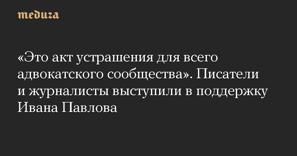 «Это акт устрашения для всего адвокатского сообщества». Писатели и журналисты выступили в поддержку Ивана Павлова