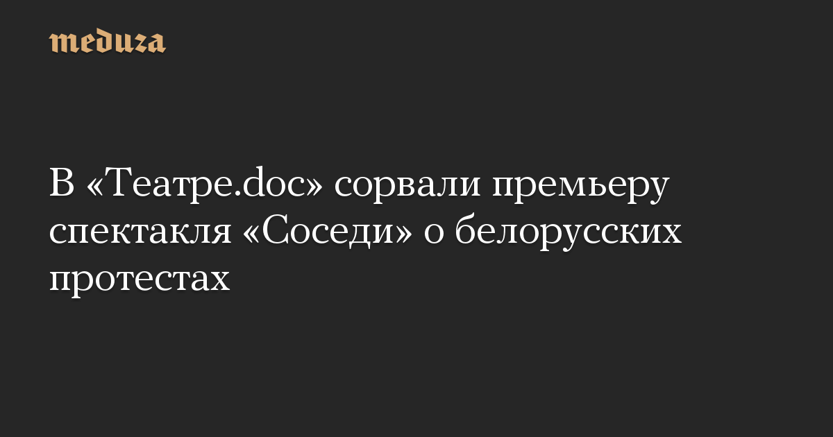 В «Театре.doc» сорвали премьеру спектакля «Соседи» о белорусских протестах