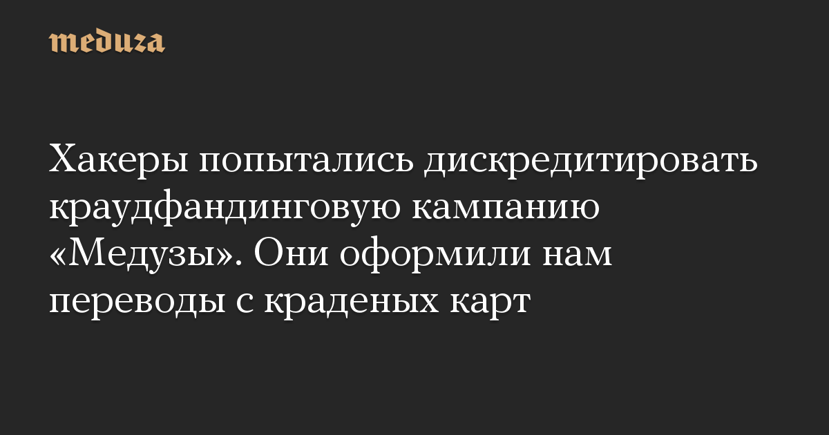 Хакеры попытались дискредитировать краудфандинговую кампанию «Медузы». Они оформили нам переводы с краденых карт