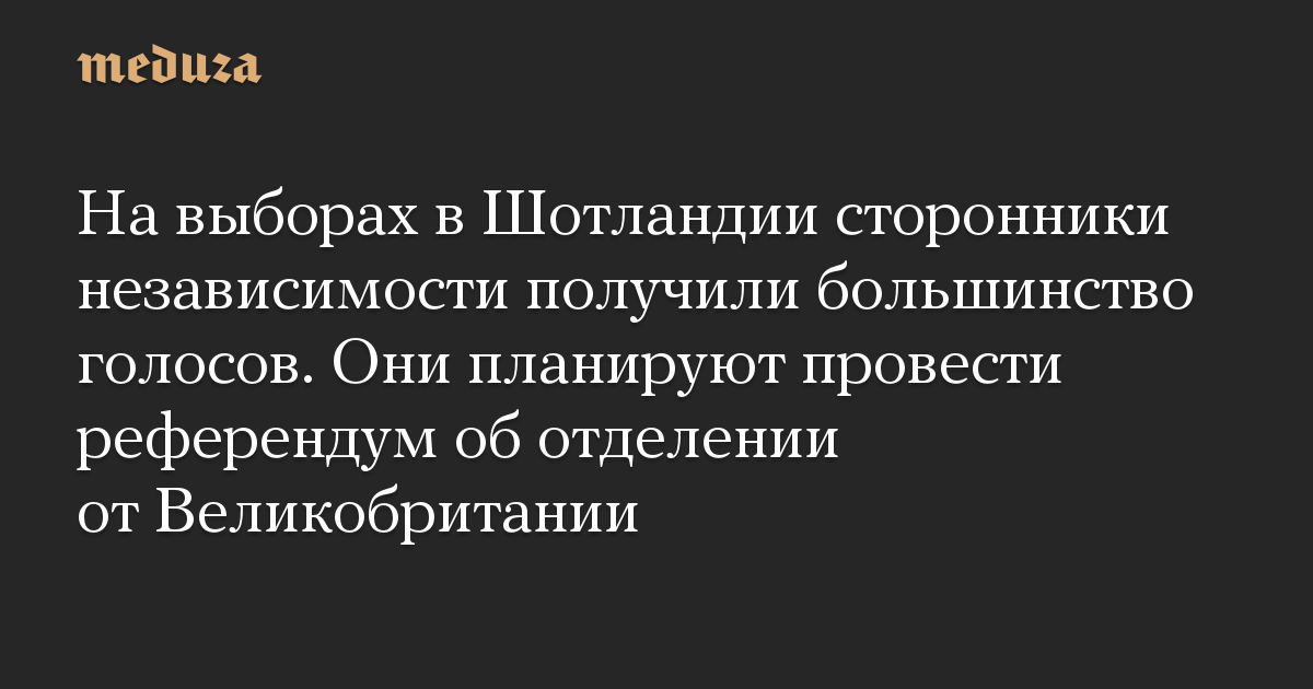 На выборах в Шотландии сторонники независимости получили большинство голосов. Они планируют провести референдум об отделении от Великобритании