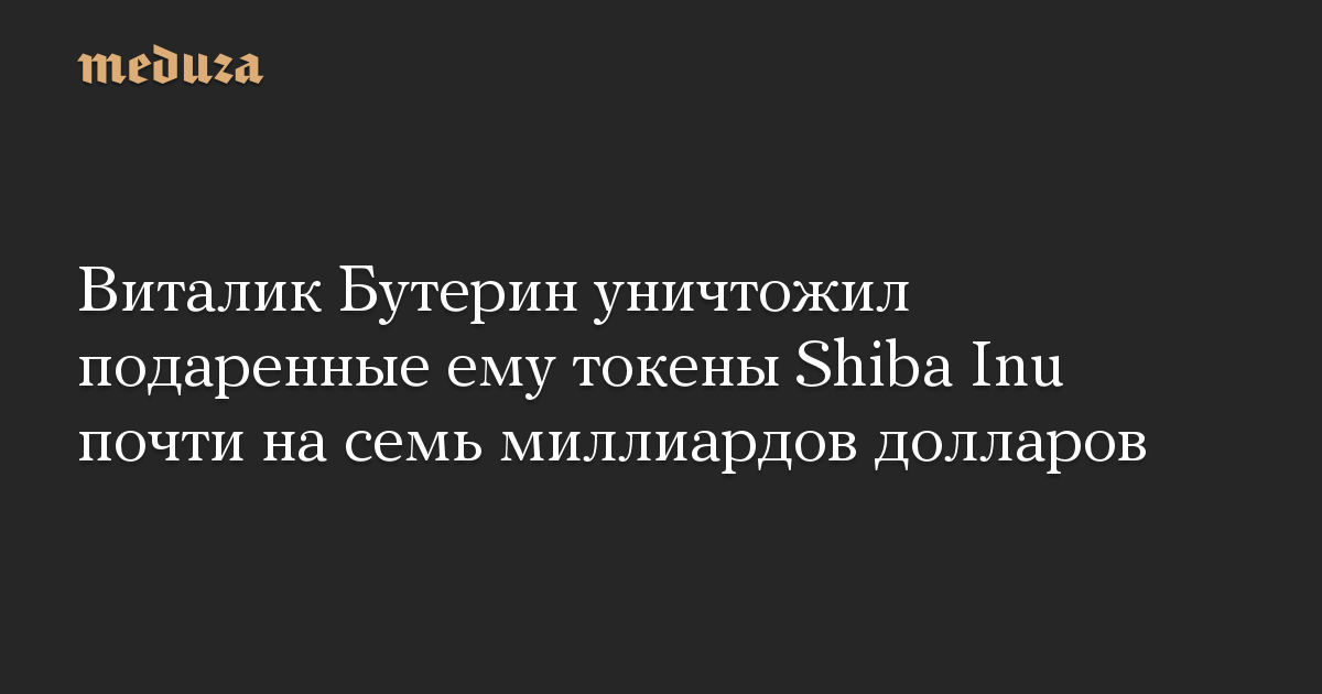 Виталик Бутерин уничтожил подаренные ему токены Shiba Inu почти на семь миллиардов долларов
