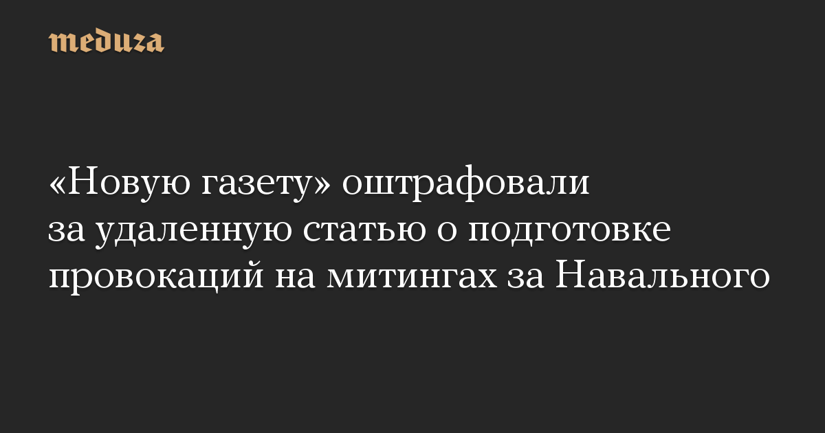 «Новую газету» оштрафовали за удаленную статью о подготовке провокаций на митингах за Навального