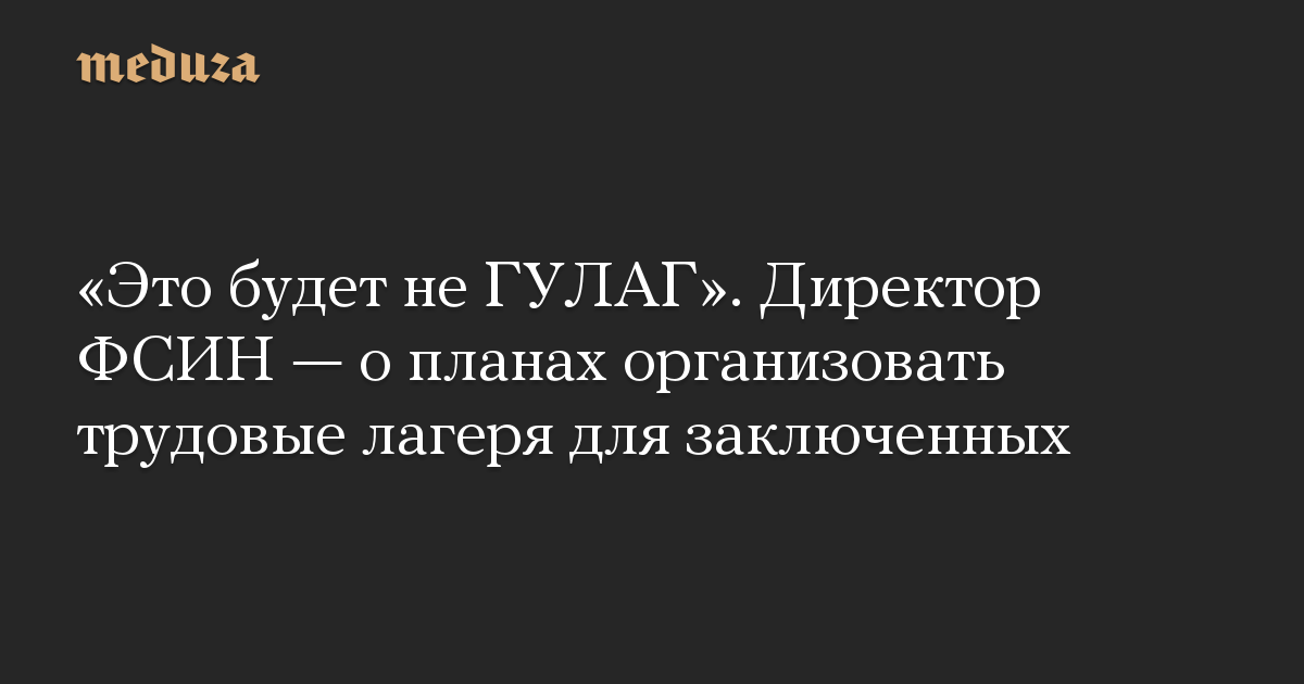 «Это будет не ГУЛАГ». Директор ФСИН — о планах организовать трудовые лагеря для заключенных