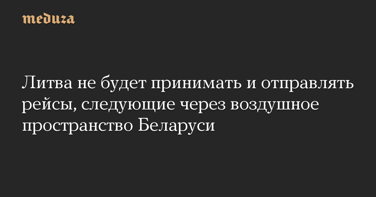 Такое решение, пояснили власти Литвы, продиктовано соображениями безопасности после происшествия с самолетом Ryanair, который 23 мая совершил вынужденную посадку в аэропорту Минска из-за сообщения о взрывном устройстве на борту. На этом самолете, выполнявшем рейс из Афин в Вильнюс, летел бывший главный редактор оппозиционного телеграм-канала Nexta Роман Протасевич. После посадки Протасевича задержали. Самолет Ryanair и его пассажиры провели в аэропорту Минска почти семь часов перед тем, как продолжить полет в Вильнюс.