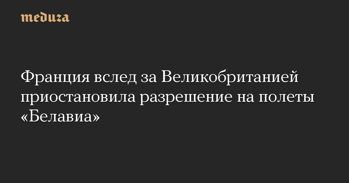 Франция приостановила разрешение на полеты белорусской авиакомпании «Белавиа» и призвала авиакомпании, работающие во Франции, прекратить полеты над Беларусью. Об этом сообщил министр-делегат по делам транспорта при министерстве экологии Франции Жан-Батист Джеббари.