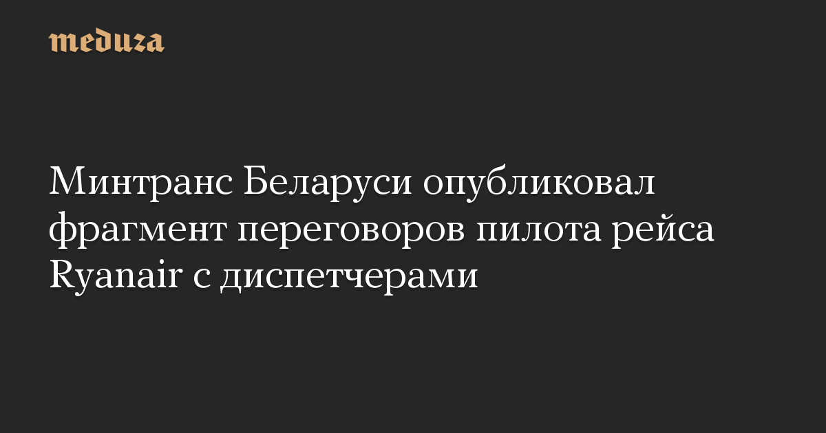 Министерство транспорта Беларуси опубликовало расшифровку фрагмента переговоров экипажа самолета Ryanair, совершившего вынужденную посадку в Минске, с белорусскими диспетчерами.