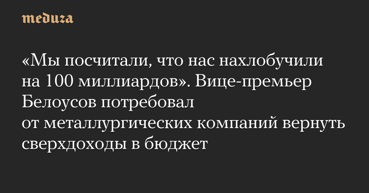 «Мы посчитали, что нас нахлобучили на 100 миллиардов». Вице-премьер Белоусов потребовал от металлургических компаний вернуть сверхдоходы в бюджет
