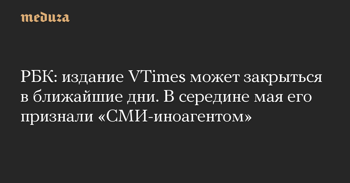Телеграм-канал «Беспощадный пиарщик» без ссылок на источники пишет, что VTimes могут закрыть к 10 июня.