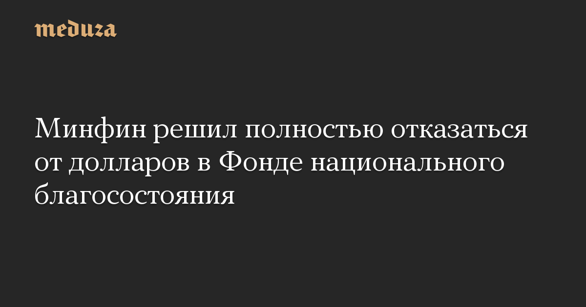 Минфин решил полностью отказаться от долларов в Фонде национального благосостояния