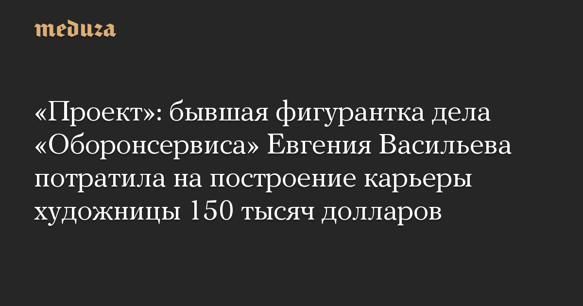 Издание «Проект» подсчитало затраты Евгении Васильевой — бывшей главы департамента имущественных отношений Минобороны и фигурантки дела «Оборонсервиса» — на построение карьеры художницы.