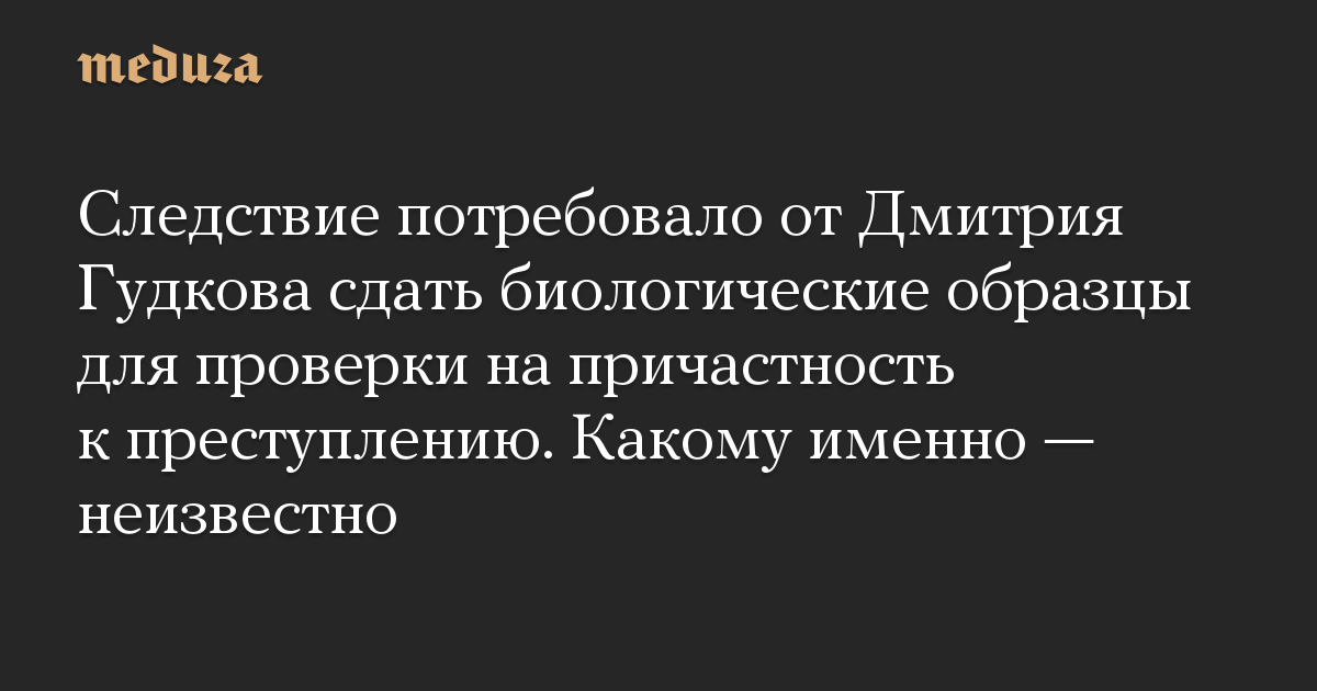 Следствие потребовало от Дмитрия Гудкова сдать биологические образцы для проверки на причастность к преступлению. Какому именно — неизвестно