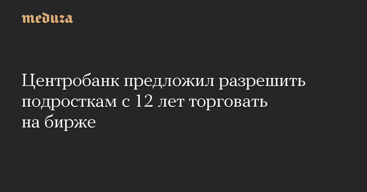 Центробанк предложил разрешить подросткам с 12 лет торговать на бирже
