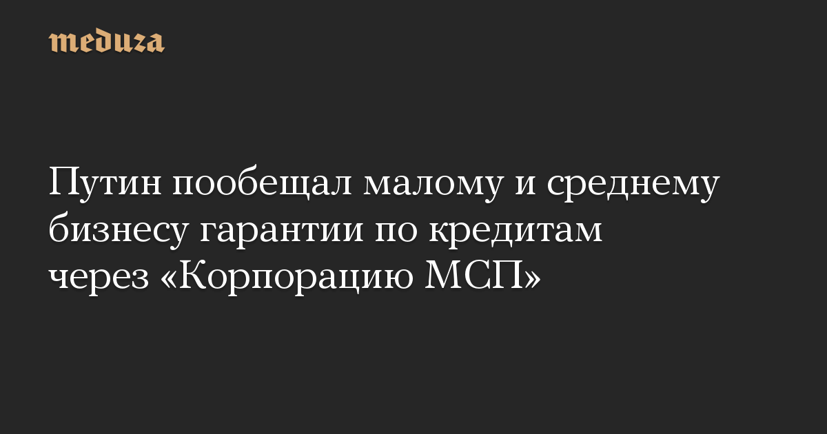 Путин пообещал малому и среднему бизнесу гарантии по кредитам через «Корпорацию МСП»