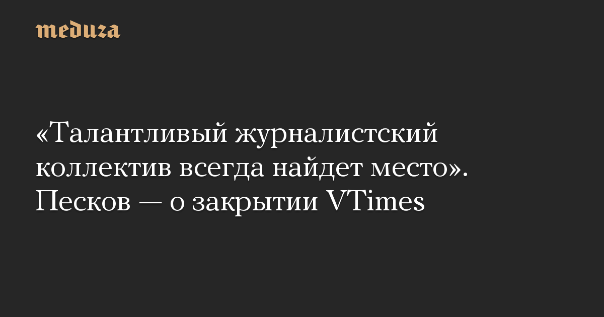 «Талантливый журналистский коллектив всегда найдет место». Песков — о закрытии VTimes